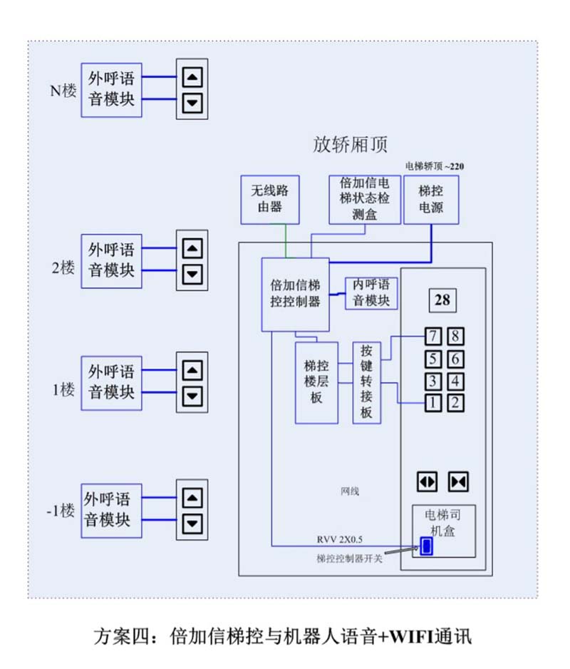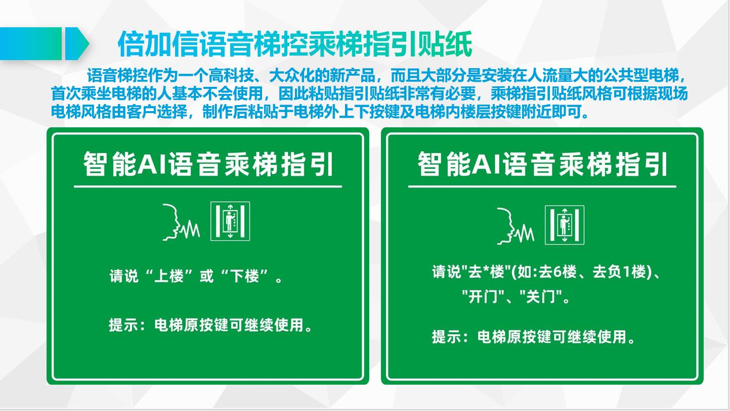 (5)加裝倍加信梯控系統,電梯原有設備都不會有任何變動,按鍵可以繼續使用,只是加了語音識別模塊自動觸發按鍵點亮,不會影響任何電梯原有線路、安全等;